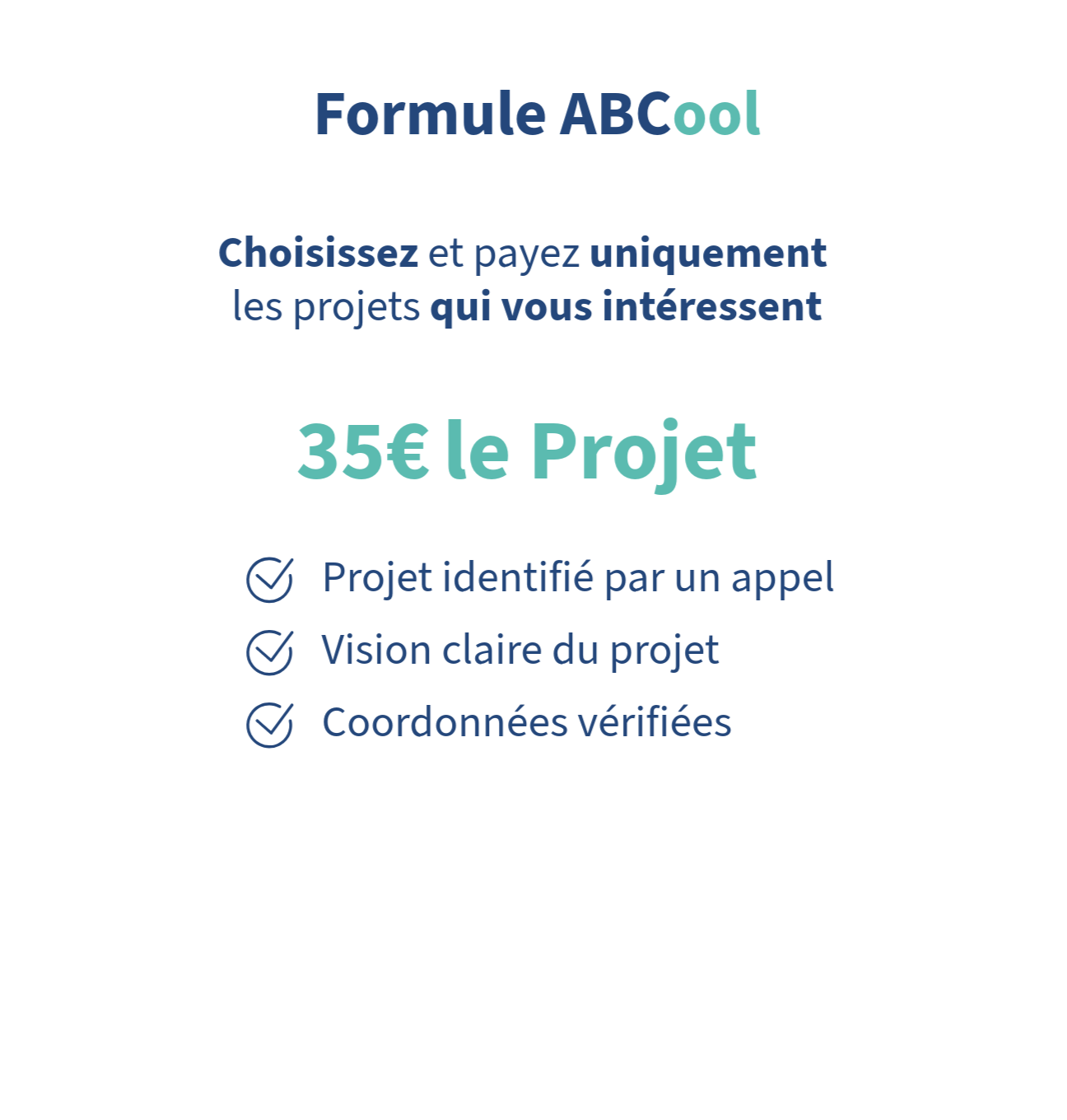 - Avec la formule ABCool, le projet coûte 35€ HT payable à l’unité au moment de la sélection.